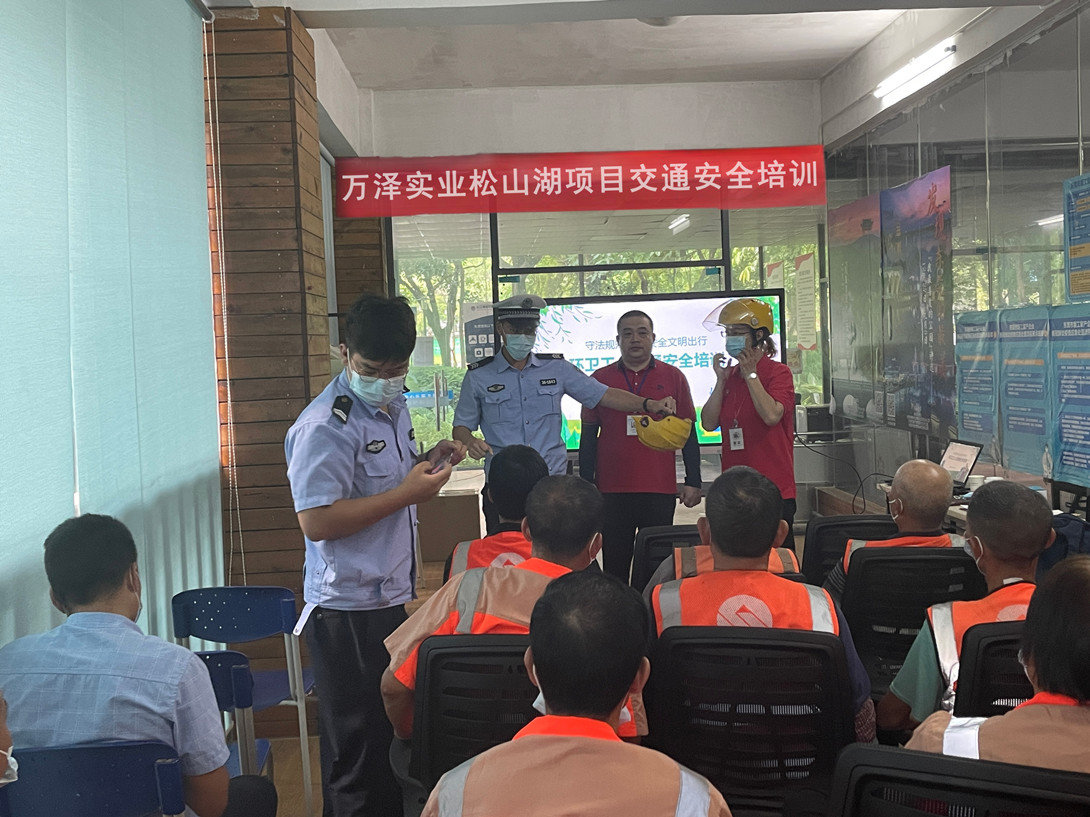为进一步加强环卫工人道路交通安全意识、文明意识和自我保护意识,共同营造安全、文明、良好的道路交通环境,有效预防和遏制道路交通事故的发生,2022年6月24日下午,松山湖交警大队携同风信子公益服务中心到我司松山湖中心区环卫工人驿站开展交通安全培训。