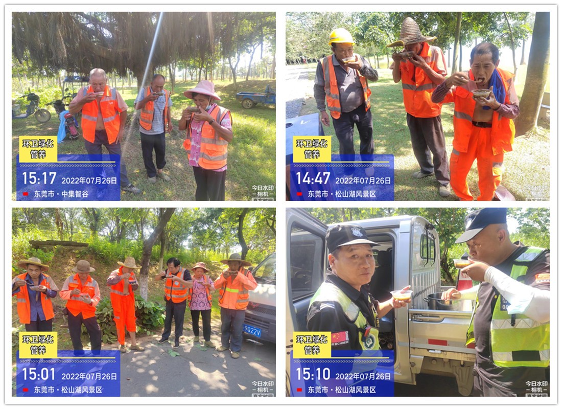 “谢谢公司和政府的关心,虽然夏天很难熬,但我们干活仍然不会马虎,因为这是我们 的职责所在!”环卫工人纷纷表示,感谢公司和社会的关心关怀,他们会继续努力,建设清 爽有序、靓丽整洁的东莞。