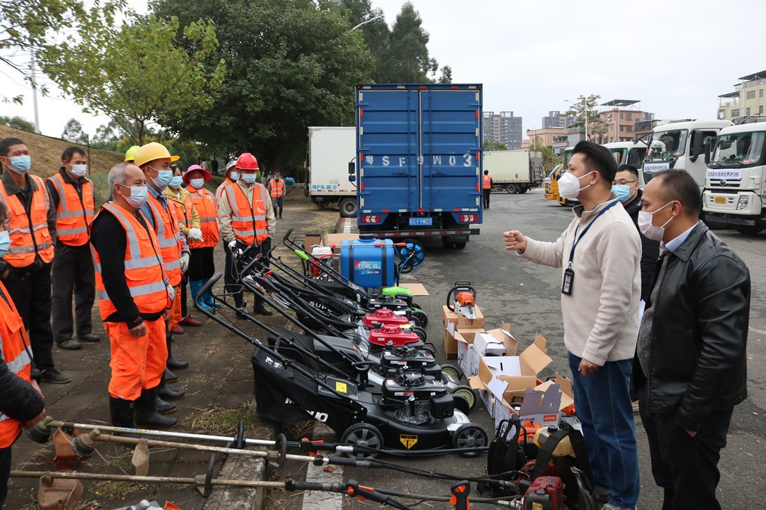 仪式上,谢经理带领刘股长及监理公司等人共同检视了我司养护管理团队、机械设备。随后,刘股长发言强调,要充分认识到绿化养护工作对东莞城市建设和生态文明建设的重要性,切实把养护工作做好;同时还要高度重视安全生产工作,严格按照安全生产操作规程做好安全防护,及时更新安全防护装备,并做好疫情防控工作,切实筑牢“安全防护网”。